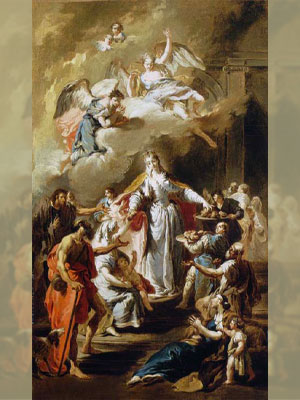 E lei Elisabetta, donna umile e dimessa, recò scandalo quando si presentò al rito nuziale senza i preziosi monili regali. ”Come potrei cingere una corona così preziosa davanti a un re coronato di spine” disse senza alcun timore ai genitori. Queste parole sono un monito alla nostra vanità.
