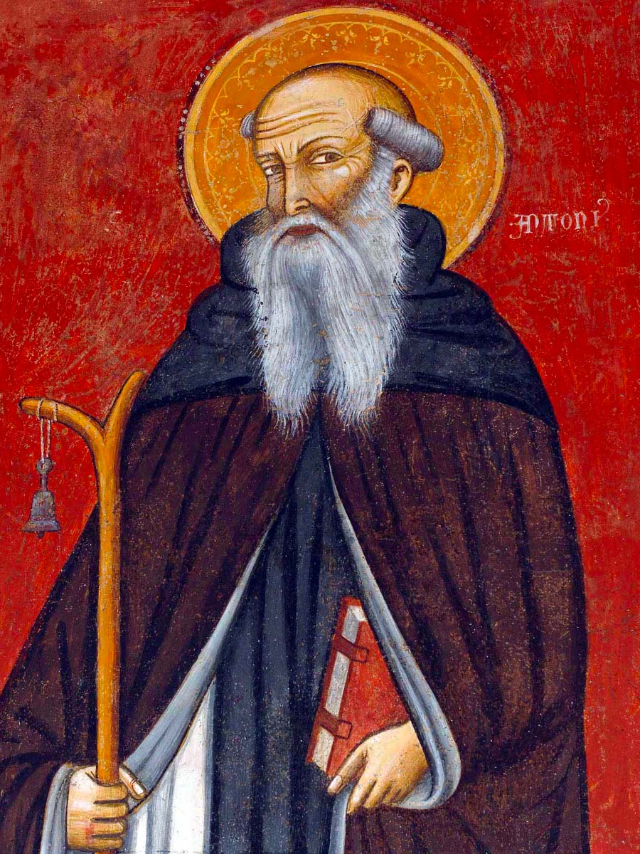 Antonio, appartenente ad un’agiata famiglia di agricoltori del Medio Egitto, dopo la morte dei ge-nitori, ispirato dall’invito evangelico . Se vuoi essere perfetto, và, vendi quello che possiedi e dal- lo ai poveri ..”, vendette tutto ciò che aveva, ritirandosi in una grotta.